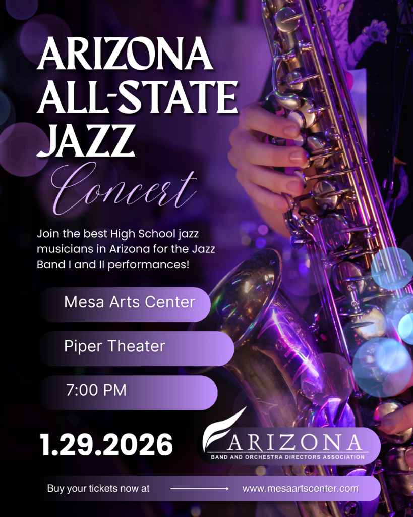 Jan142026 ABODA presents the 2026 All-State Jazz Band I & II Concert at Mesa Arts Center on Jan 29! Tickets on sale now